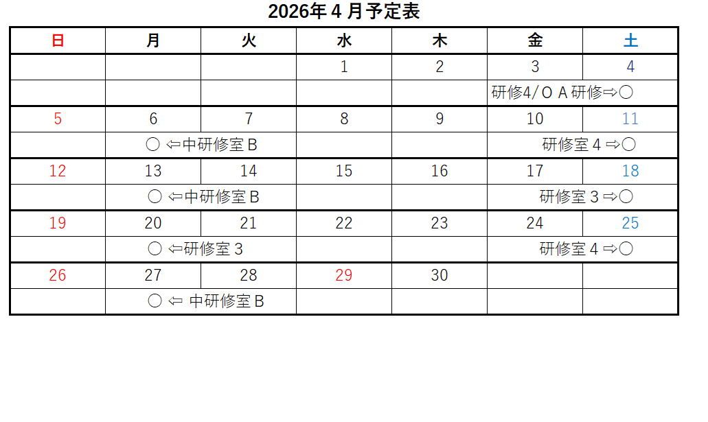 ◎ 4月 4日㈯9:00~11:45 研修室4